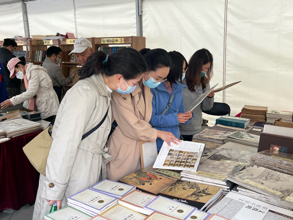 本届书市以“书香京城·悦读春天”为主题,一进入朝阳公园南门,书市气氛浓郁,映入我院职工眼帘的是《信仰:马克思主义的“道”与社会主义的“理”》《读懂中国共产党》等主题出版读物,大家通过参与主题日开展的重点活动,深刻领悟到中华优秀传统文化之美。在精品出版专区,展陈《万寿盛典图》、《孟宪章旧藏碑帖丛集》等优秀出版物,在专区还有配以“片羽存真”等自主研发的系列文创产品,以及古籍修复技艺展示和体验活动,我院职工可近距离感受传统文化的深厚魅力,深入了解传统技艺的独特风采。