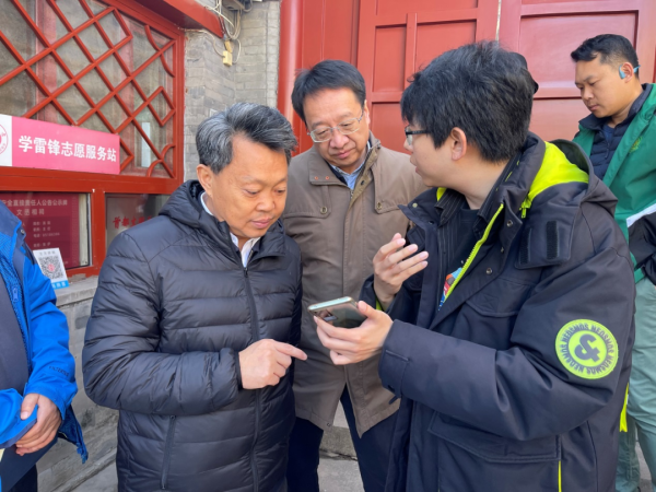市第四次全国文物普查领导小组办公室主任陈名杰同志与市第四次全国文物普查领导小组办公室副主任、首规委办专职副主任牛锐同志实地查看普查数据采集流程