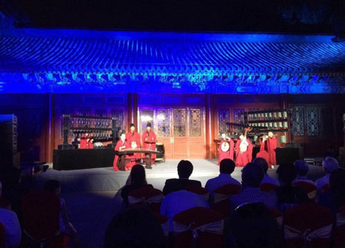 2016年9月10日晚,智化寺京音乐队应邀赴北京大学赛克勒考古与艺术博物馆参加 “鸣鹤清赏——古韵今声中秋古乐欣赏晚会”。晚会由河南博物院华夏古乐团和北京智化寺乐队联袂演出,让观众穿越时空,领略到从春秋战国到秦汉唐宋,直至大明的遗响。来自文博、考古等方面的专家和北京大学文博考古学院的师生观看了演出。
