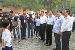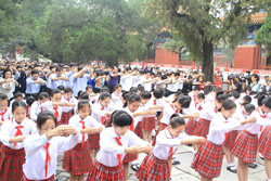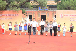 9月9日上午,在具有700多年历史的孔庙大成殿广场前,“第四届北京孔庙•国子监国学文化节”隆重开幕。全国政协教科文卫体委员会委员、中国文联副主席、文化部原副部长陈晓光,中国艺术研究院副院长贾磊磊、北京市文物局局长舒小峰,市文物局副局长于平、刘超英、东城区委书记杨柳荫、区委副书记、区长牛青山以及东城区相关委办局领导、北京市优秀教师代表、东城区教育标兵、学生代表、社区居民代表、新闻媒体记者等500余人参加了开幕式。