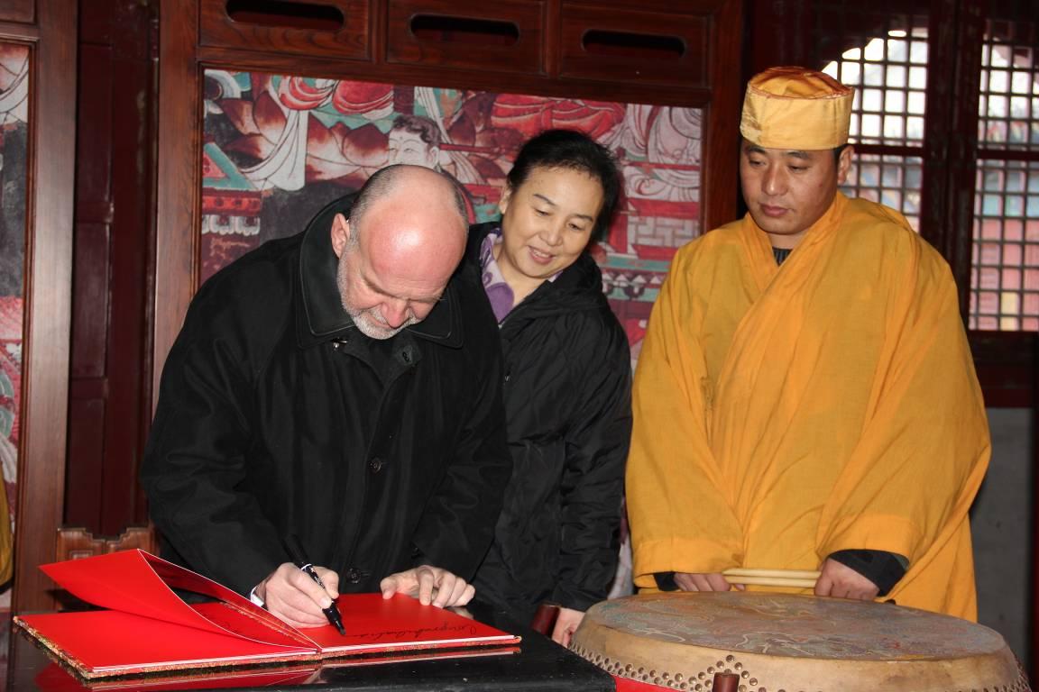 近日,东城区朝阳门街道一行3人陪同卢森堡国际友人来到智化寺参观。在北京文博交流馆讲解员的带领下,来宾欣赏了非物质文化遗产——智化寺京音乐,并参观了智化寺明代古建筑群。(北京文博交流馆)