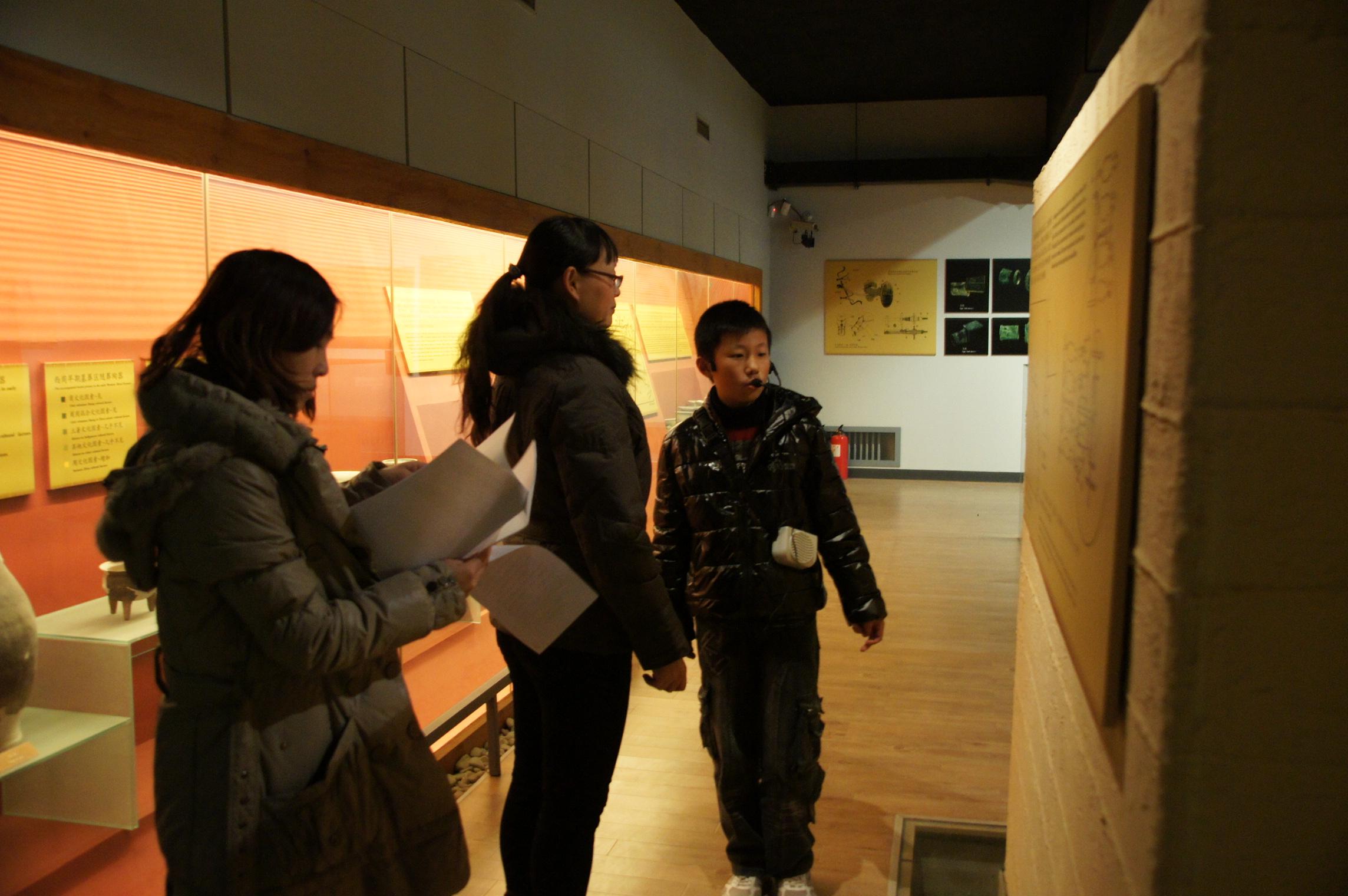 北京西周燕都遗址博物馆与窦店中心学校共同举办的“我爱家乡 我是小小讲解员”培训活动,已于11月初开课了。学校经过层层选拔,从四、五年级学生中挑选出20名品学兼优的学生进行讲解员培训。经过校内培训后,于近日到北京西周燕都遗址博物馆进行最后一个环节培训——实地讲解。博物馆三名讲解员分别对20名学生进行了现场授课,纠正孩子们的站姿、站位、手势及眼神沟通等,最终20名学生顺利通过了考核,成为西周馆的小讲解员。(北京西周燕都遗址博物馆)