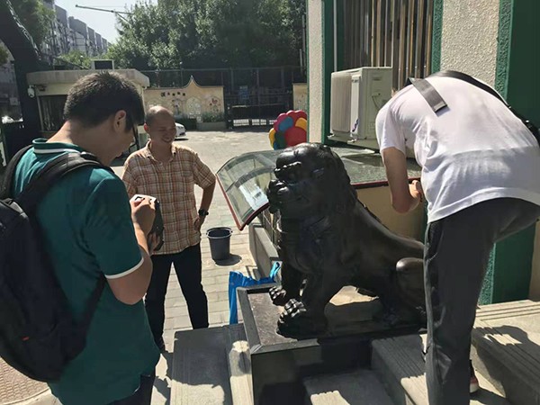 7月25日,大钟寺古钟博物馆工作人员赴东城区回民实验小学调查该校旧藏的清代铁狮子。