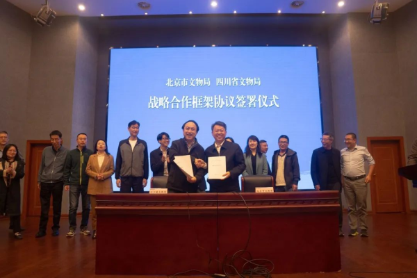 11月4日,北京市文物局和四川省文物局签订战略合作框架协议,拟推动双方在加强世界文化遗产申报、考古研究、革命文物保护传承、博物馆展陈、人才交流培养等方面的深化合作,推动文博事业高质量发展,更好促进北京、四川两地文物事业再上新台阶。