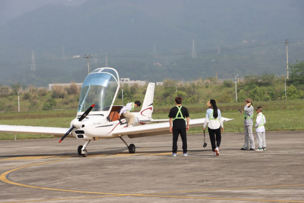 位于重庆两江新区的重庆龙兴通用机场内,重庆市民在进行低空飞行体验。(受访对象供图)