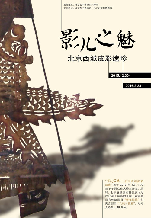 12月30日,北京艺术博物馆与永定河文化博物馆在北京艺术博物馆大禅堂联合举办了“影儿之魅——北京西派皮影遗珍”展览。