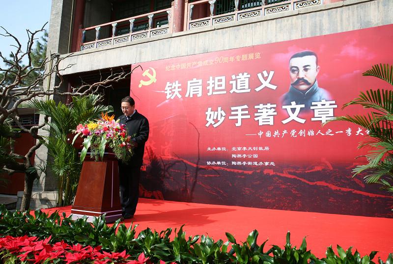 4月2日上午,《铁肩担道义 妙手著文章——中国共产党创始人李大钊》专题展览在陶然亭公园举办开幕仪式。陶然亭公园园长肖绍祥、西城区文化委员会主任李征帆、北京市公园管理处中心处长孟庆红和西城区旅游局副处级调研员孔田土等领导出席开幕仪式。