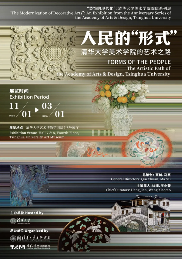 展览简介:展览旨在追溯清华大学美术学院(原中央工艺美术学院)的艺术文脉。它所呈现的“装饰观”与“形式美”,构成了中国现代艺术探索中一条独特而重要的路径。展览分为两个部分、八个篇章。第一部分为人民的“形式”与艺术创造,包括“装饰”救国、时代“漫”画、中国新形象、“形式美”、民族重光、大雅民风、“风筝不断线”七个篇章;第二部分为人民的“形式”与国家视觉。