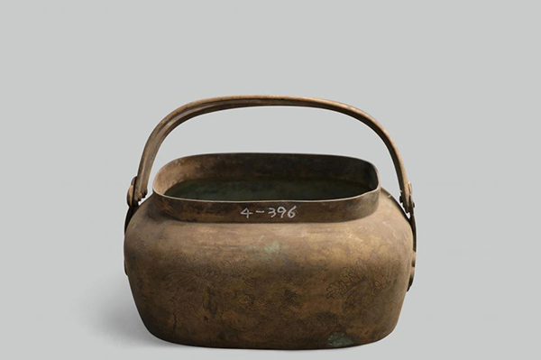 民俗-清代四方形刻草叶纹提梁铜手炉