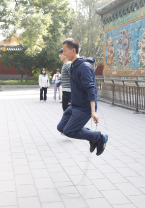 上午十时许,同志们陆续走向九龙壁前的比赛场地,积极踊跃的参加趣味体育活动。跳绳赛场上一声令下,选手们都不甘示弱,奋力的跳着,气氛紧张激烈;踢毽子赛场上更是精彩,个个身姿矫健,技巧花样百出,他们脸上都洋溢着轻松快乐,流露出灿烂的笑容。趣味体育活动使大家意犹未尽,活动。