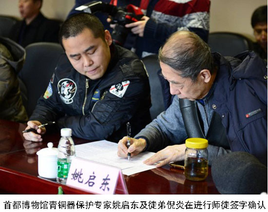 启动仪式上,10对“师徒”现场签订了“师傅徒弟确认表”,局工会现场向10对“师徒”支付了“师傅带徒弟”活动经费。京音乐国家级传承人胡文学、文物考古及保护董育纲、文物预防性保护何海平三位师傅及徒弟,分别在启动仪式上发言,“师傅”们表示:认真承担起“师傅”的责任和义务,将全部技能毫无保留地传授给“徒弟”,为文物保护技能传承贡献力量;“徒弟”们表示,尊敬“师傅”,刻苦学习,学好技能,服务文博。