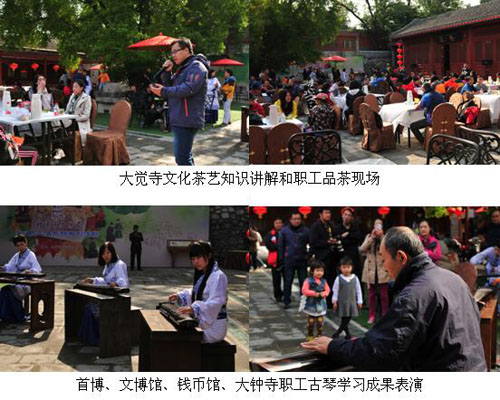 活动由局工会主办,大觉寺文化茶艺、艺博摄影、奥博健步走、团城爬山、大钟寺古琴等五家俱乐部承办。活动期间,局属西周遗址博物馆、文博交流馆、古建博物馆、大钟寺博物馆、石刻博物馆、艺术博物馆、大觉寺管理处等七家基层单位,近80件文化产品(职工 经济技术创新成果)进行了交流展示。