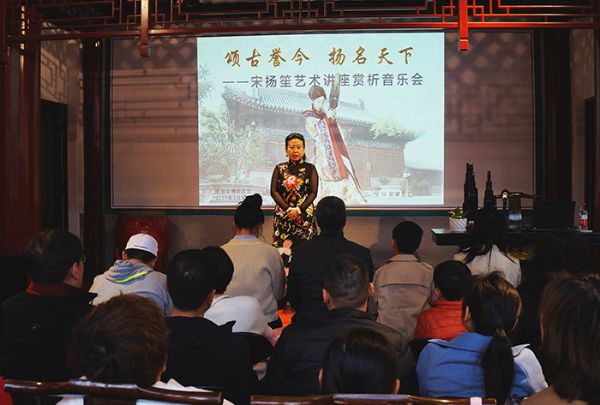2019年3月31日下午,在北京文博交流馆举办了“颂古誉今,扬名天下——宋扬笙艺术赏析音乐会”。本场活动的特邀嘉宾是中国著名笙演奏家、中国歌剧舞剧院民族乐团笙首席、国家一级演员宋扬女士。宋扬女士为文博馆职工和观众深入浅出地介绍了笙这件具有3000多年历史的传统乐器。本期活动的特色是讲座与表演相结合。宋扬老师携其学生——来自中国戏曲学院、中央民族大学的8位青年演奏家为在场观众表演了《秦王破阵乐》、《晋调》、《虎年虹湾图》、《冬猎》等9首笙的传统与现代乐曲,让大家充分了解了不同笙的笙音与艺术表现力。同时,为了让观众更好的了解笙在传统音乐中的作用,智化寺音乐队为大家展演了国家级非物质文化遗产智化寺京音乐的经典曲牌。