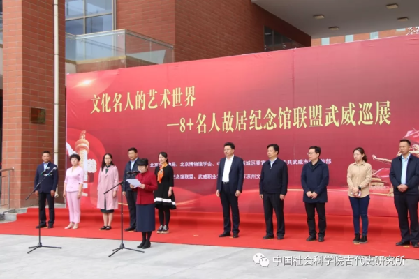 2021年5月21日上午,由北京市文物局、北京博物馆学会、中共北京市西城区委宣传部、中共武威市委宣传部主办,“8+”名人故居纪念馆联盟、武威职业学院、武威市凉州文化研究院承办的“8+”名人故居纪念馆联盟巡展在武威职业学院隆重召开。本次展览以“平等·多元·包容——文化名人的艺术世界”为主题。开幕式由武威市委常委、副市长姜旭云主持,古代史研究所(郭沫若纪念馆)党委书记赵笑洁,武威市委副书记、市委政法委书记赵立新出席并致辞。赵笑洁系统回顾了郭沫若与武威的文化渊源,介绍了古代史研究所与武威市开展的广泛合作,指出本次展览站在“两个一百年”的历史交汇点,通过再现和彰显展览中14位革命先驱与历史文化名人,揭示他们作为时代的见证者、实践者与推动者,更是民族精神的代表的历史角色,对于当前的文化建设,具有重要意义。武威市人大常委会副主任杜泽秀,市政协副主席达文明,古代史研究所科研处副处长任会斌及古代史研究所、郭沫若纪念馆相关同志出席了开幕式。