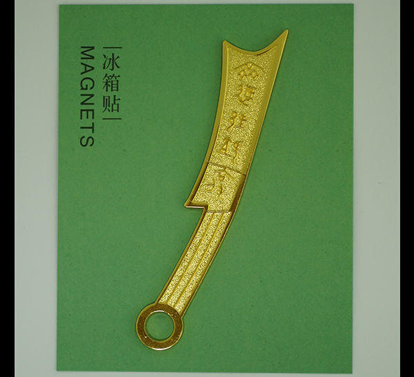 为配合“戎刀燕币——尖首刀币起源的故事”展览举办而开发的文创产品。东周时期,各诸侯国的货币形态各异,从中选取了代表性的战国时期齐国的六字刀“齐造邦长法化”刀币开发为磁贴产品,使观众对中国古代早期的钱币形态加深了解。