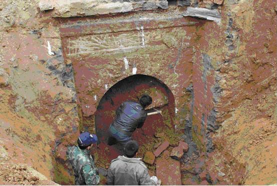 墓葬清理发掘现场
