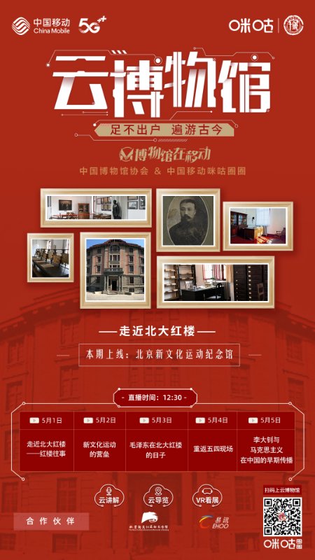 据悉,此次北京新文化运动纪念馆“云博物馆”直播将于5月1日至5日,每日12:30在中国移动咪咕圈圈平台播出。 (马海亭)