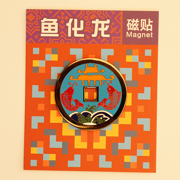 为配合“龙行天下——钱币上的中国龙”展览举办而开发的文创产品。这一系列主要通过选择钱币上的龙纹和龙凤纹纹饰进行创意的。中国传统纹样“鱼化龙”表现的是民间传说中鲤鱼跃龙门,寓意科举考试成功,改变命运,求得富贵。