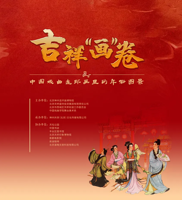 展览简介:展览以百年戏曲连环画为核心载体,循着腊月祭灶到元宵灯会的年节时序脉络,将传统年俗与戏曲艺术巧妙编织成一幅生动鲜活的民俗长卷。展览精心设置“新年序曲”“吉祥献瑞”“神骏开道”“灯火良宵”四个特色单元,通过近百件珍贵展品,构建起兼具文化深度与观赏趣味的节日文化空间。