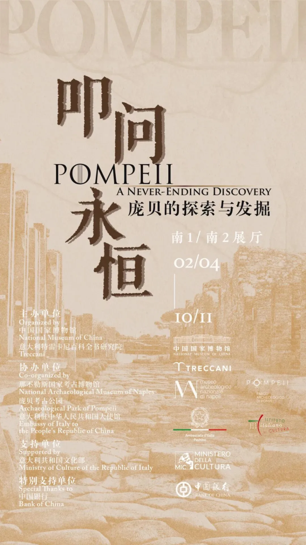 展览简介:展览以考古发现为线索,聚焦庞贝古城从18世纪重见天日以来的探索历程,梳理不同时期在考古方法、理念及成果上的演进,借助最新考古成果,以全新视角还原庞贝作为罗马帝国重要城市的历史风貌及当时人们的生活场景,揭示其在罗马帝国中的重要地位及与地中海地区的广泛联系。展览将展出来自意大利的精选文物105件(套),涵盖大理石雕塑、壁画、陶器、青铜器、金饰等珍贵文物,其中81件(套)为首次来华,另有7件(套)在意大利国内也尚未公开展示。展览还包括3组沉浸式体验空间,将相关考古发掘成果以多维度展现方式进一步呈现,为公众提供更为直观和震撼的观展体验。