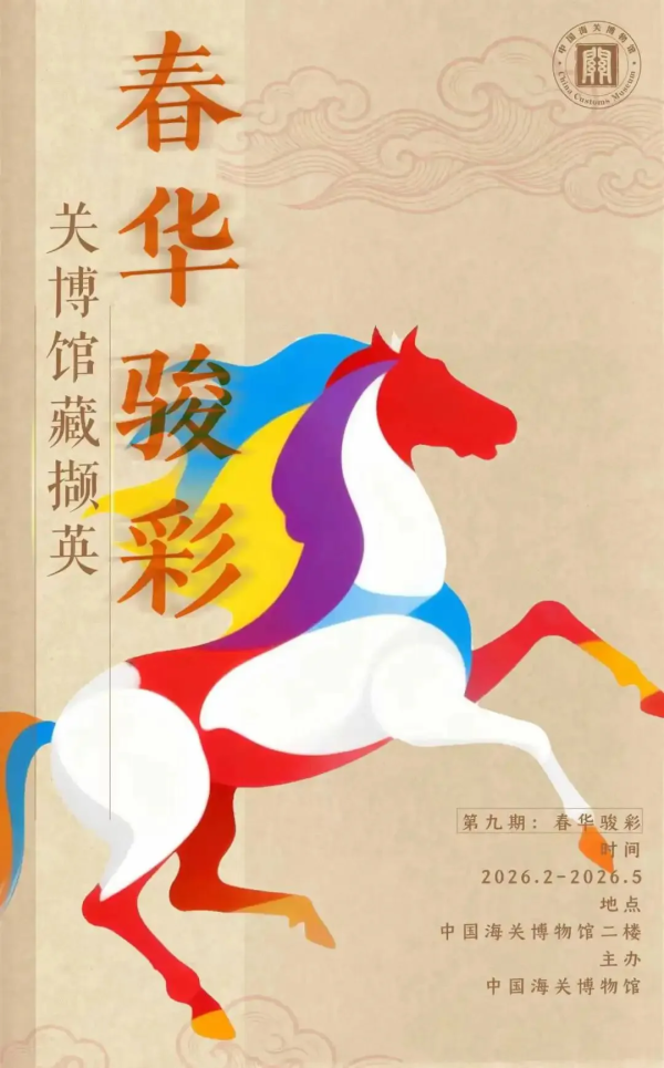 展览简介:海关博物馆特别推出“关博馆藏撷英——春华骏彩”专题展览,同期举办“春华骏彩”系列学术活动。通过创作、溯源、印记三大环节,将传统文化与新春祈愿相融,为观众打造一场兼具知识性与互动性的文化盛宴。