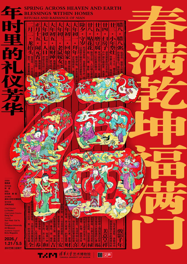 展览简介:展览汇集清华大学艺术博物馆相关馆藏150余组件,并结合汉声“中华传统民间文化基因库”上百幅图像,以“时光年味”“骏影千年”“美意呈祥”三个章节,在年的时间线索中平行呈现,探寻年味的深层含义。展览通过器物艺术史与民间生活文化视角的深度对话,完整剖析了年节的民俗事项、伦理情感与艺术表达,更解读了2026年值年生肖“马”的文化脉络。将“物”(文物)与“事”(民俗)并置、“雅”(馆藏)与“俗”(田野)对话、“古”(传统)与“今”(当代)链接,试图通过系列展览梳理、活化中华优秀传统民间文化,呈现其中蕴含的生活智慧、美学观念与精神世界,搭建传统与现代的对话桥梁。
