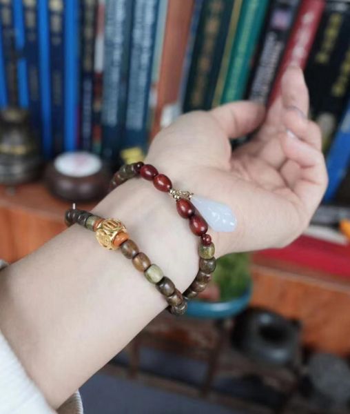 产品简介:采用天然玉石、绿檀木与大觉元素配饰串连。展现了古玉兰的花繁瓣硕,色洁俊逸;并将大觉禅寺以汉字文化元素植入文创产品,以产品助力大觉文化建设。