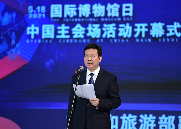 5月18日上午,由国家文物局和北京市人民政府主办,中国博物馆协会、北京市文物局承办,北京博物馆学会、首都博物馆、北京市内相关博物馆联合协办的2021年“国际博物馆日”中国主会场活动开幕式在首都博物馆举行。文化和旅游部党组书记、部长胡和平,北京市委副书记、市长陈吉宁,文化和旅游部副部长、国家文物局局长李群,文化和旅游部党组成员、故宫博物院院长王旭东,北京市政府党组成员、副市长杨斌、靳伟,国家文物局党组成员、副局长关强等出席相关活动。